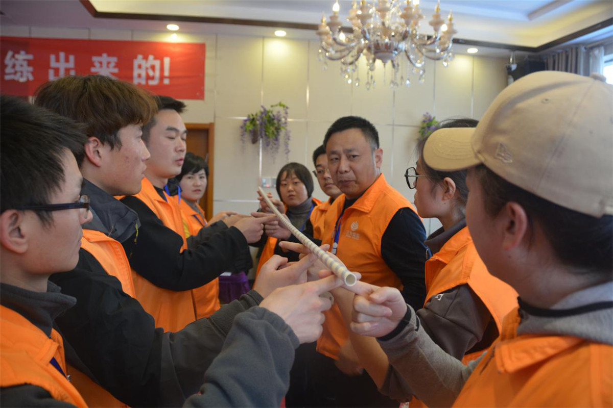 參加人員被隨機(jī)分為四個(gè)團(tuán)隊(duì),通過(guò)集體討論,確定了各自的隊(duì)名、隊(duì)長(zhǎng)和口號(hào)。在培訓(xùn)過(guò)程中,有考驗(yàn)團(tuán)隊(duì)默契的“同舟共濟(jì)”項(xiàng)目;有培養(yǎng)團(tuán)隊(duì)配合能力的“眾志成城”、“領(lǐng)導(dǎo)風(fēng)采”等項(xiàng)目;尤其是在磨煉團(tuán)隊(duì)意志力、協(xié)作力,提升團(tuán)隊(duì)協(xié)作意識(shí)的“生命之旅”項(xiàng)目訓(xùn)練中,參訓(xùn)成員充分發(fā)揮相互協(xié)作的精神,同心協(xié)力、默契配合,克服種種“路途”困難,以自身的“感悟”升華到“感恩”,從而達(dá)到“打開(kāi)心門(mén)活出真我”的培訓(xùn)效果。