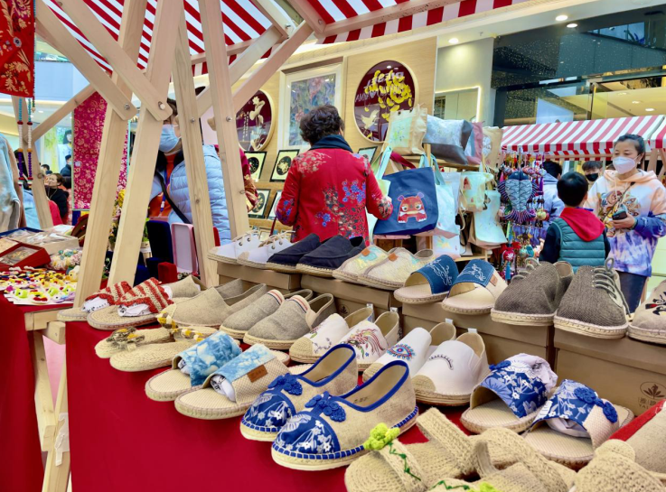 集市上,刺繡、香包、剪紙、草編、串珠、掐絲畫(huà)、麥桿畫(huà)等多種隴原民俗文化手工藝品精彩紛呈,多名非遺傳承人現(xiàn)場(chǎng)演示剪紙、刺繡、染纈等傳統(tǒng)手工技藝,還有互動(dòng)體驗(yàn)及產(chǎn)品展銷(xiāo),現(xiàn)場(chǎng)熙熙攘攘,熱鬧非凡。