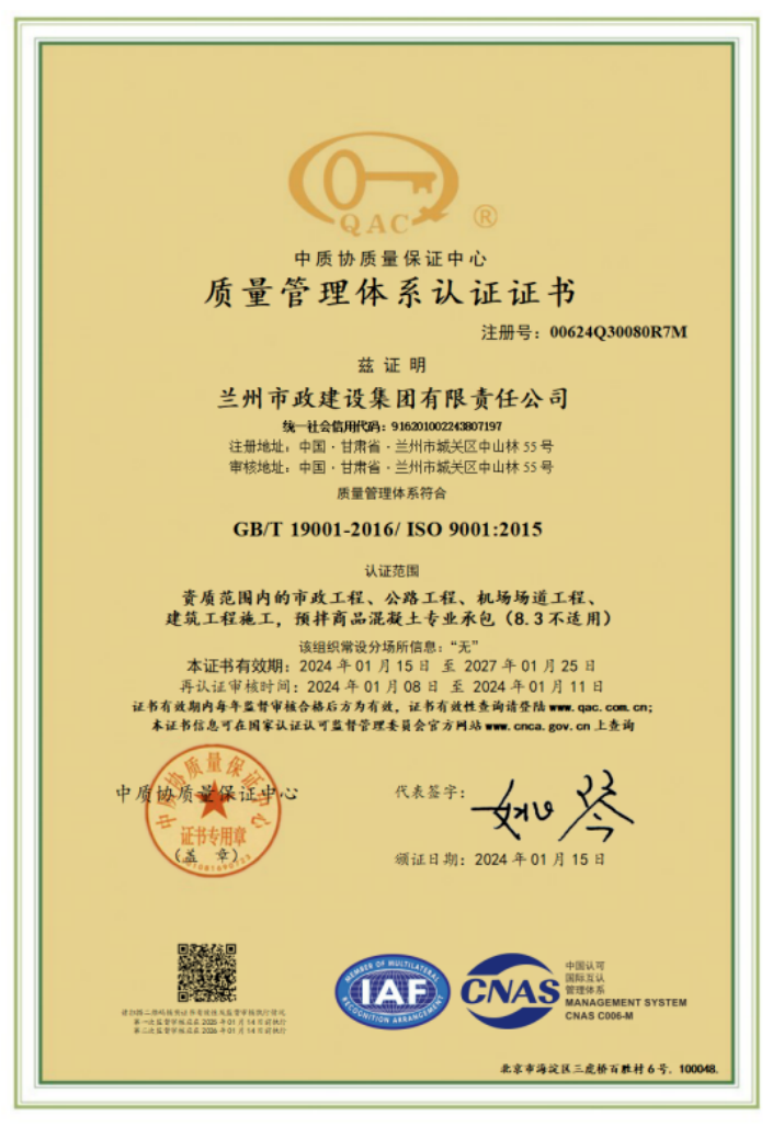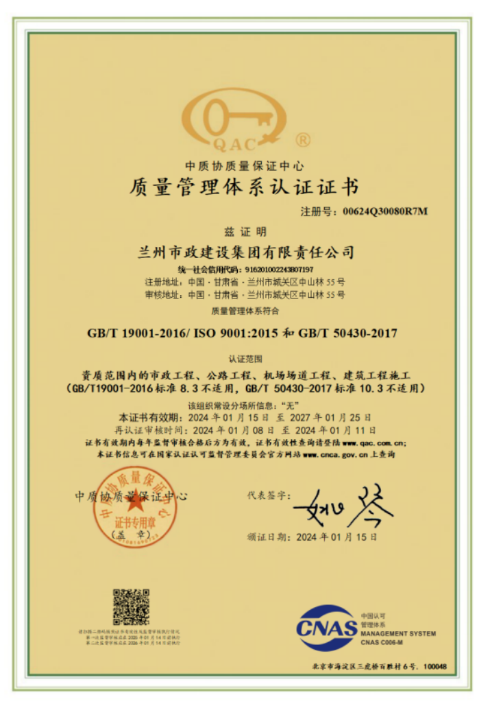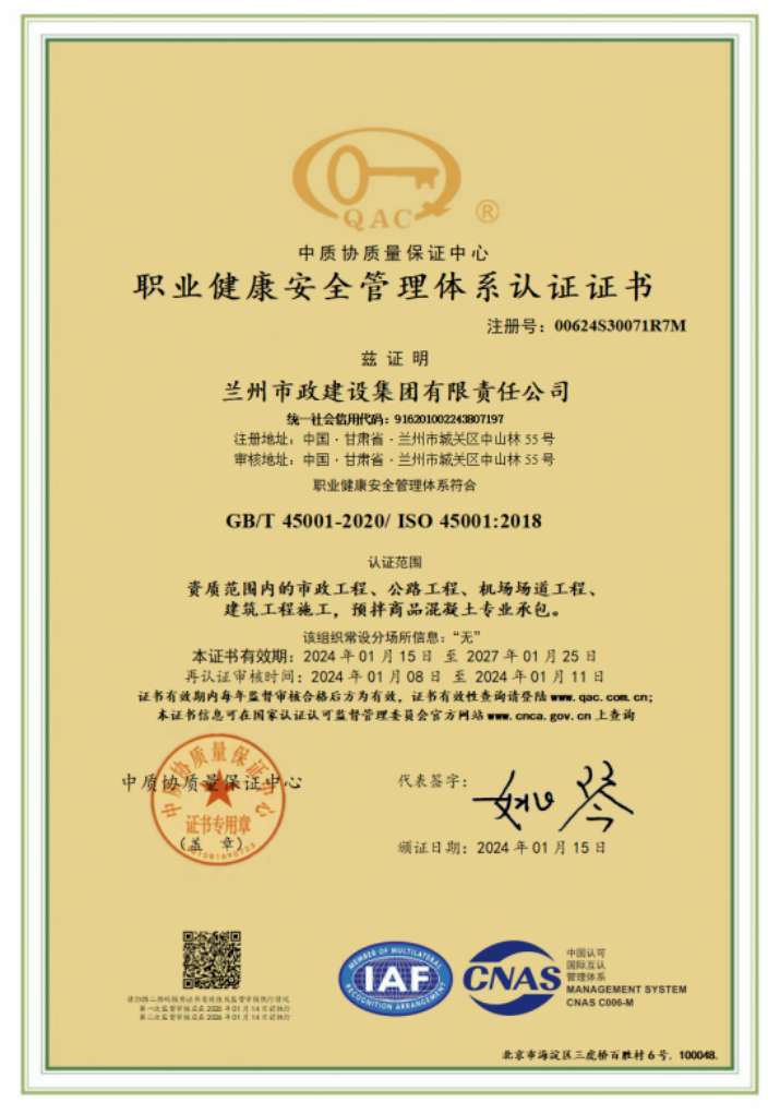 1月23日,甘肅文旅集團(tuán)旗下子公司蘭州市政建設(shè)集團(tuán)順利通過(guò)ISO9001質(zhì)量管理體系、ISO14001環(huán)境管理體系、ISO45001職業(yè)健康安全管理體系再認(rèn)證審核,蘭州市政建設(shè)集團(tuán)已連續(xù)27年通過(guò)ISO綜合管理體系認(rèn)證。
