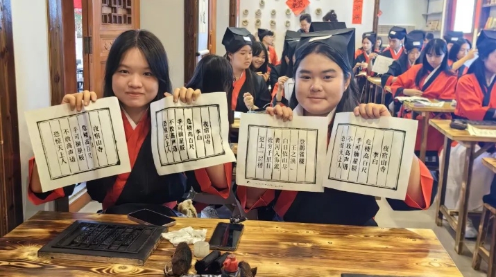在河口古鎮(zhèn)的國(guó)學(xué)活字印刷研學(xué)館,港澳青少年們親自動(dòng)手體驗(yàn)了古代的活字印刷術(shù)。他們小心翼翼地?cái)[放著字模,用墨汁輕輕刷過(guò),再將宣紙覆蓋其上,輕輕一壓,一幅幅唐詩(shī)便躍然紙上。他們齊聲用粵語(yǔ)朗誦了“憫農(nóng)”“春曉”“相思”等經(jīng)典唐詩(shī),不僅領(lǐng)略了民間藝術(shù)的獨(dú)特魅力,更在實(shí)踐中感受到了中華文化的博大精深。