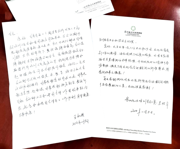 近期,“甘肅省第十六期民營經(jīng)濟代表人士高級培訓班”在天水圓滿結(jié)束。期間,天水和諧園承擔了此次培訓班的接待任務(wù)。酒店以完備的場地設(shè)施、精細的餐飲安排、貼心的住宿服務(wù),贏得了參會代表的認可與稱贊,其服務(wù)保障工作收獲諸多好評。 代表們一封封手寫的感謝信,一張張普通的便簽紙,沒有華麗的詞句,字里行間卻流露著對天水和諧園全體干部員工的真誠情感與真摯謝意。 “餐飲保障質(zhì)量高,會議保障精細,車輛保障及時安全,住宿保障服務(wù)好”“這是我第一次入住天水和諧園,在此我感受到了家的溫暖,酒店提供了優(yōu)質(zhì)的服務(wù)?!眳韨兊姆Q贊不絕于耳。天水和諧園以專業(yè)的服務(wù)能力和熱情細心的服務(wù)態(tài)度,得到了大家的肯定和表揚。 作為省內(nèi)“老品牌”高端酒店,天水和諧園在提升服務(wù)管理方面下足功夫,將各項措施細化落實到位,全方位、立體式地為客戶提供精細、專業(yè)、標準的管家式服務(wù),致力于為廣大客戶打造更加舒心、舒適且人性化的旅居環(huán)境。以革新和創(chuàng)效為基礎(chǔ),注重品質(zhì)化、個性化、人文化服務(wù)實踐,聚焦企業(yè)文化底蘊與新潮靈動發(fā)展相碰撞,從點滴細節(jié)締造溫馨、溫情的入住體驗,著力打造西北“溫度、深度、寬度”并存的特色精品休閑度假酒店。 未來,天水和諧園將以更加細致入微的服務(wù)溫暖人心,深耕現(xiàn)代服務(wù)理念,不斷創(chuàng)新服務(wù)模式,為新老客戶帶去真正值得信賴的“和諧體驗”及“如意服務(wù)”。在今后的發(fā)展中,天水和諧園將持續(xù)優(yōu)化服務(wù)流程,創(chuàng)新服務(wù)模式,提高自身的服務(wù)水平和競爭力,以更高效、優(yōu)質(zhì)、專業(yè)的服務(wù)迎接來自四面八方的貴賓,續(xù)寫天水和諧園高質(zhì)量發(fā)展的新篇章。